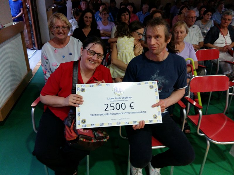 V petek 1.9.2017 smo na krajevnem prazniku Vogrskega izkupiček turističnega rallyja v višini 2.500,00 Eur simbolno izročili Varstveno delovnemu centru Nova Gorica za enoto na Vogrskem. Ček je direktorici VDC-ja ga. Tei Leban izročila predsednica Tanja Baša Jasnič. Ob tej priložnosti je predsednica nagovorila krajane in ostale prisotne in jih seznanila z poslanstvom lionizma...