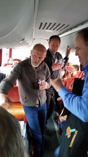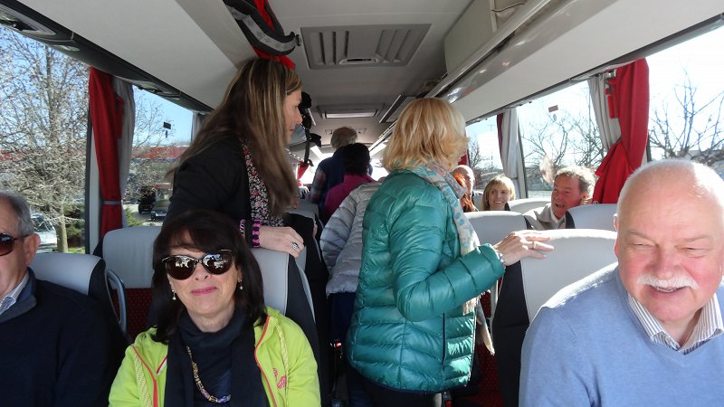 Prvi dan: Pot preko Verone, Varese Lugano. Že od prihoda na avtobus živahno. 4:06 start. Ko se naredi dan za zajtrk penina ala »Vanja«. Odlična ! Ponudba osredotočena na del avtobusa okrog hladilnika. Ne manjka tudi šalam. Do oddaljenih delov avtobusa ponudba ne seže. Postanek in malica za vse ! Tudi penina. Nato veselo naprej. Zaplet na...