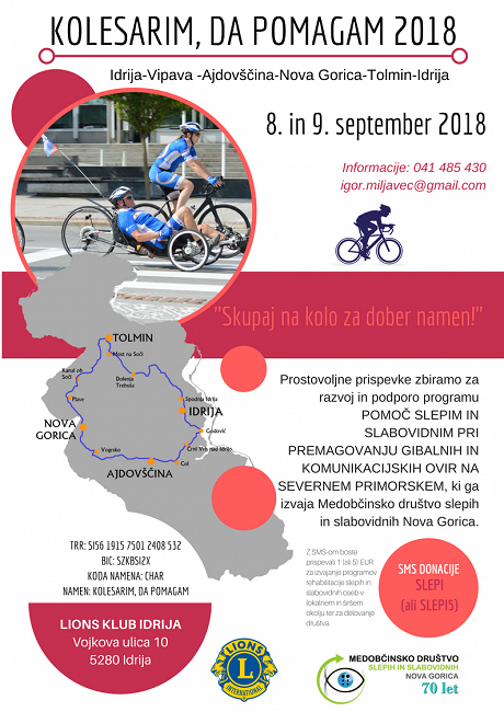 Po prvem delovnem sestanku novega mandata pod vodstvom Darija Novaka dne 27.8.2018 na katerem smo sprejeli program aktivnosti za lionistično leto 2018/19, smo 8.9.2018 že imeli prvo konkretno humanitarno akcijo v organizaciji LK Idrija Kolesarim, da pomagam. V organizacijo je bil vključen tudi naš klub z organizacijo postanka kolesarjev na dvorcu Vogrsko in priključitvijo nekaj...