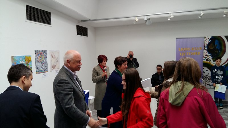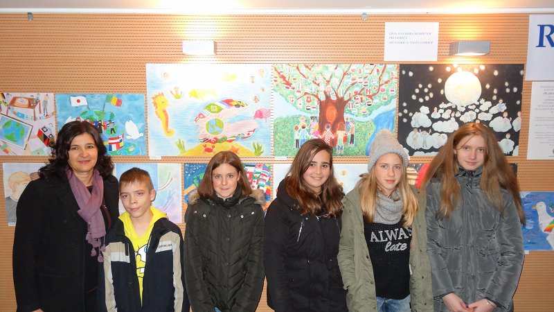 Zključna prireditev »Plakat miru 2015/016« Ljutomer Drugo leto sodelovanja v projektu Plakat miru z osnovno šolo Ivana Roba iz Šempetra pri Gorici nam je prineslo ponovno tri finaliste med 24 na nivoju distrikta. Imeli smo ponovno dober razlog, da smo se z našimi finalistkami Meto Skočaj, Kajo Winkler, Gajo Žnidarčič in mentorico Tjašo...