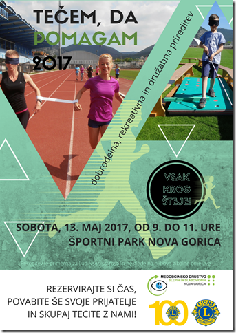 Medobčinsko društvo slepih in slabovidnih (MDSS) Nova Gorica pripravlja tudi letos, skupaj z Lions klubi severne Primorske in Mestno občino Nova Gorica, že 5. dobrodelno, netekmovalno in družabno prireditev »Tečem, da pomagam«.