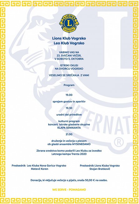 Vas vabita na 23. SVEČANI VEČER, V Soboto 5. Oktobra ob 19 uri, NA DVORCU VOGRSKO